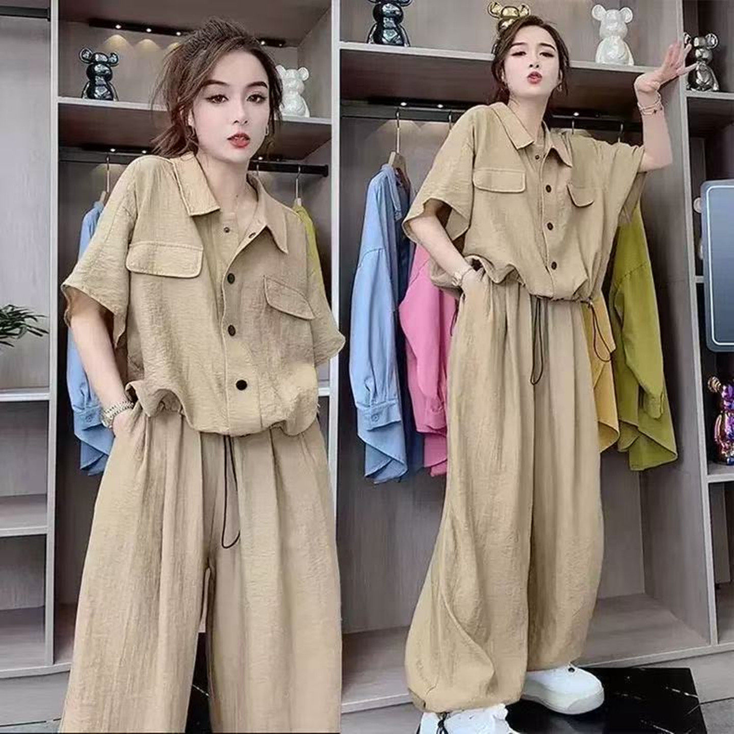 2026胖mm大码女装夏季时尚休闲套装女宽松减龄洋气遮肉短袖两件套