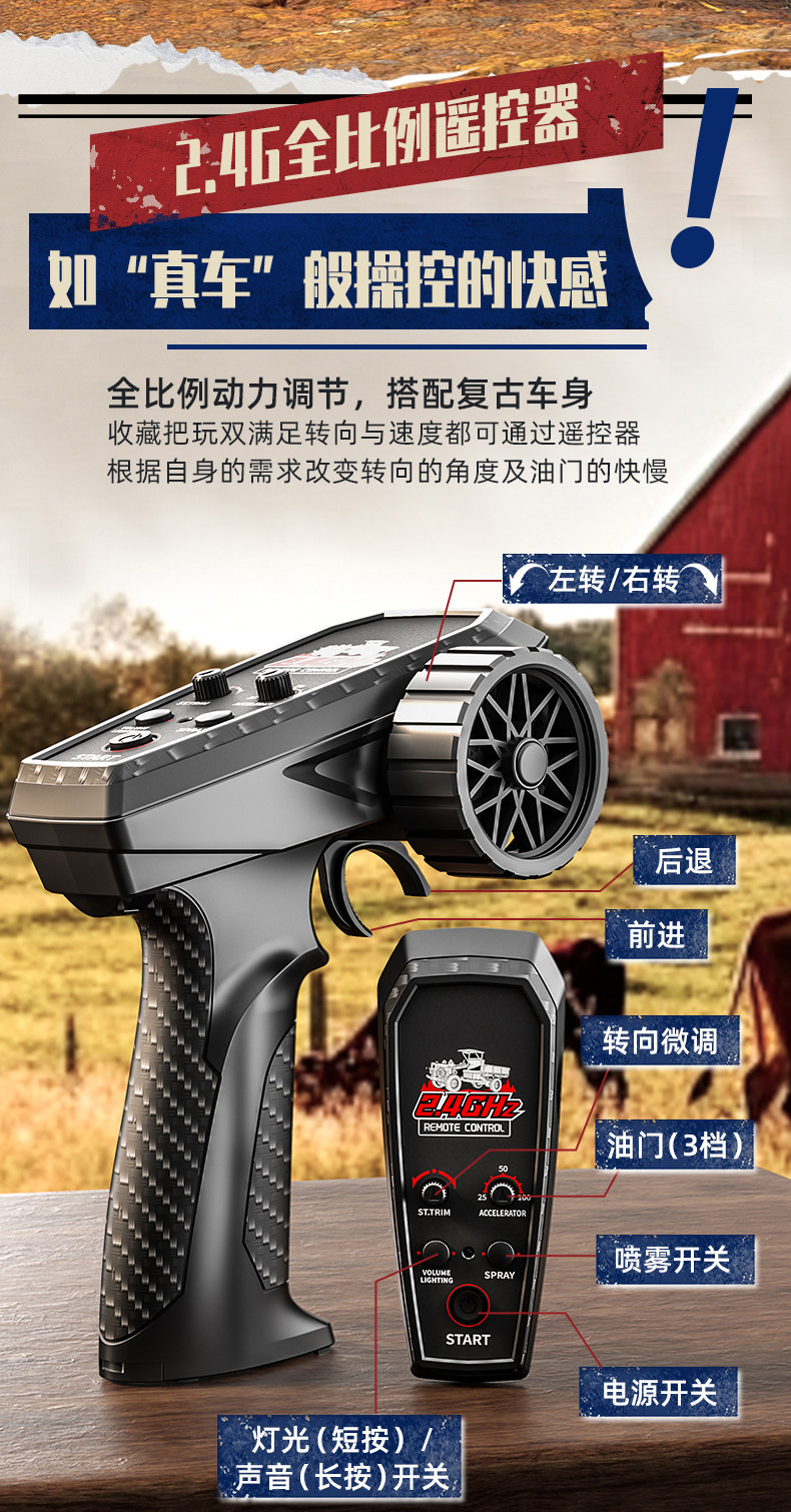 全比例rc遥控手扶拖拉机四驱大马力男孩汽车2026新款攀爬越野玩具