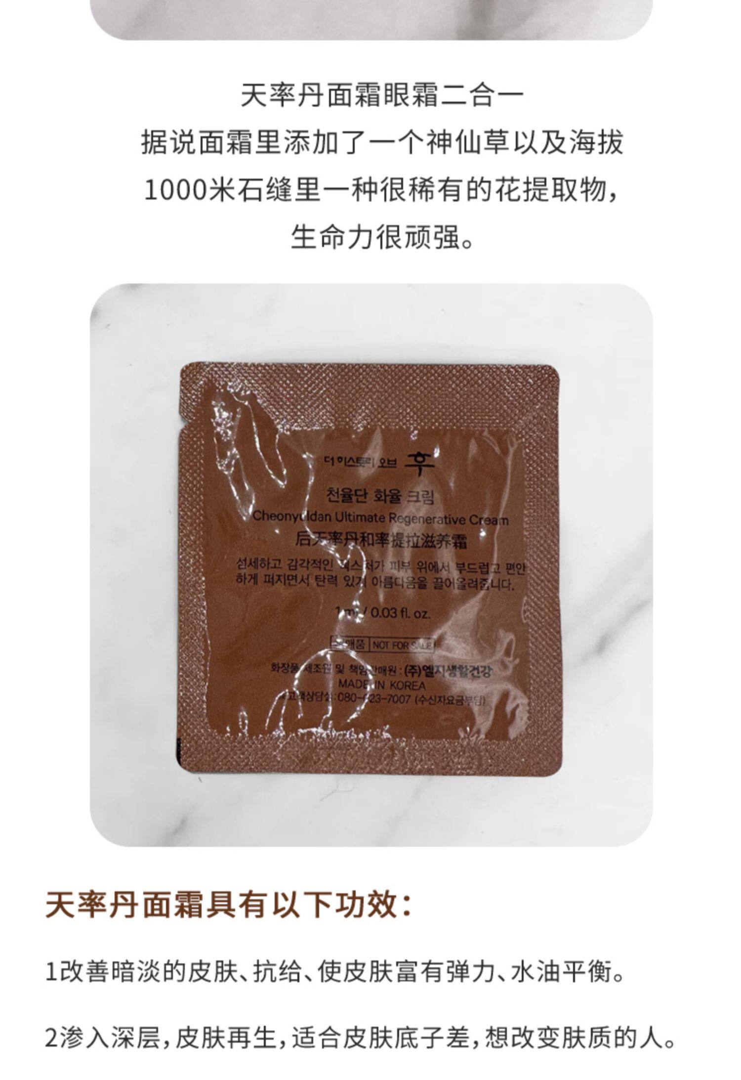 整包120片 后whoo天率丹面霜眼霜二合一小样多效补水提拉紧致抗皱